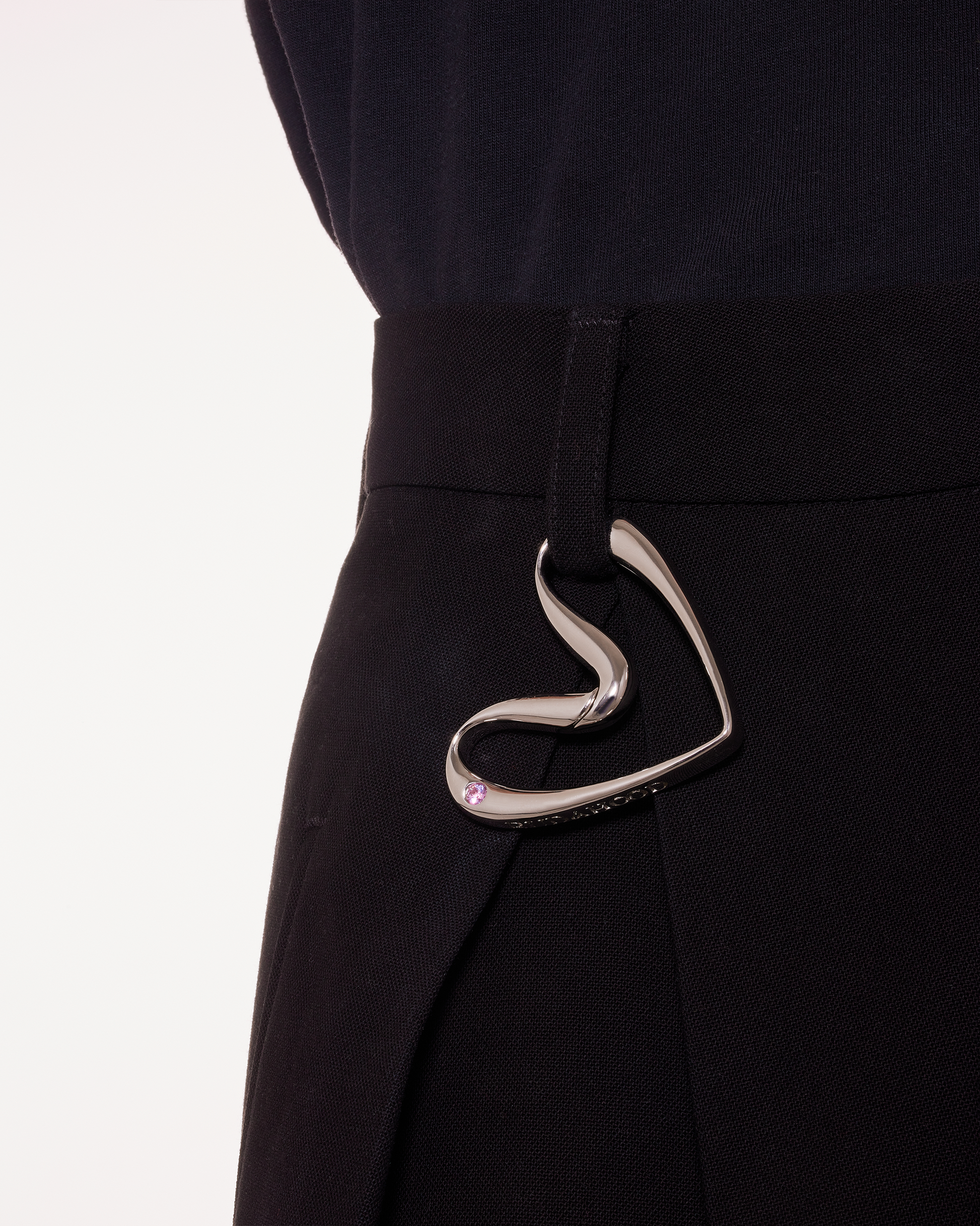 The Heart Temple Clasp is crafted from sterling silver plated with 18K white gold and pavé-set with natural amethyst.