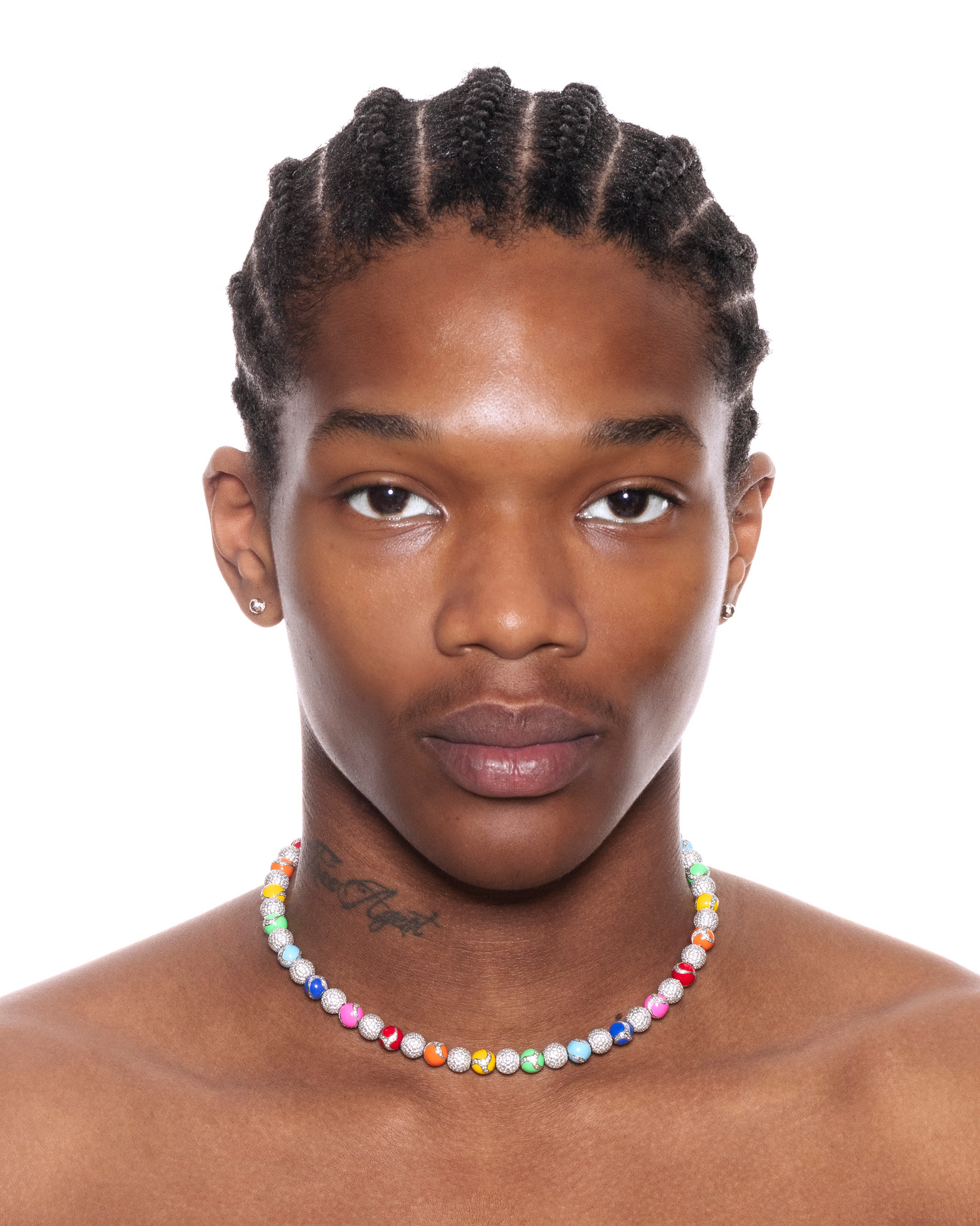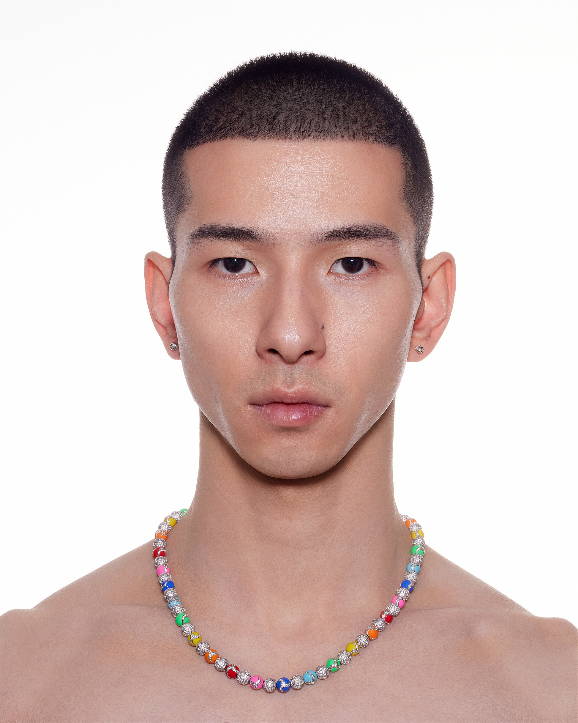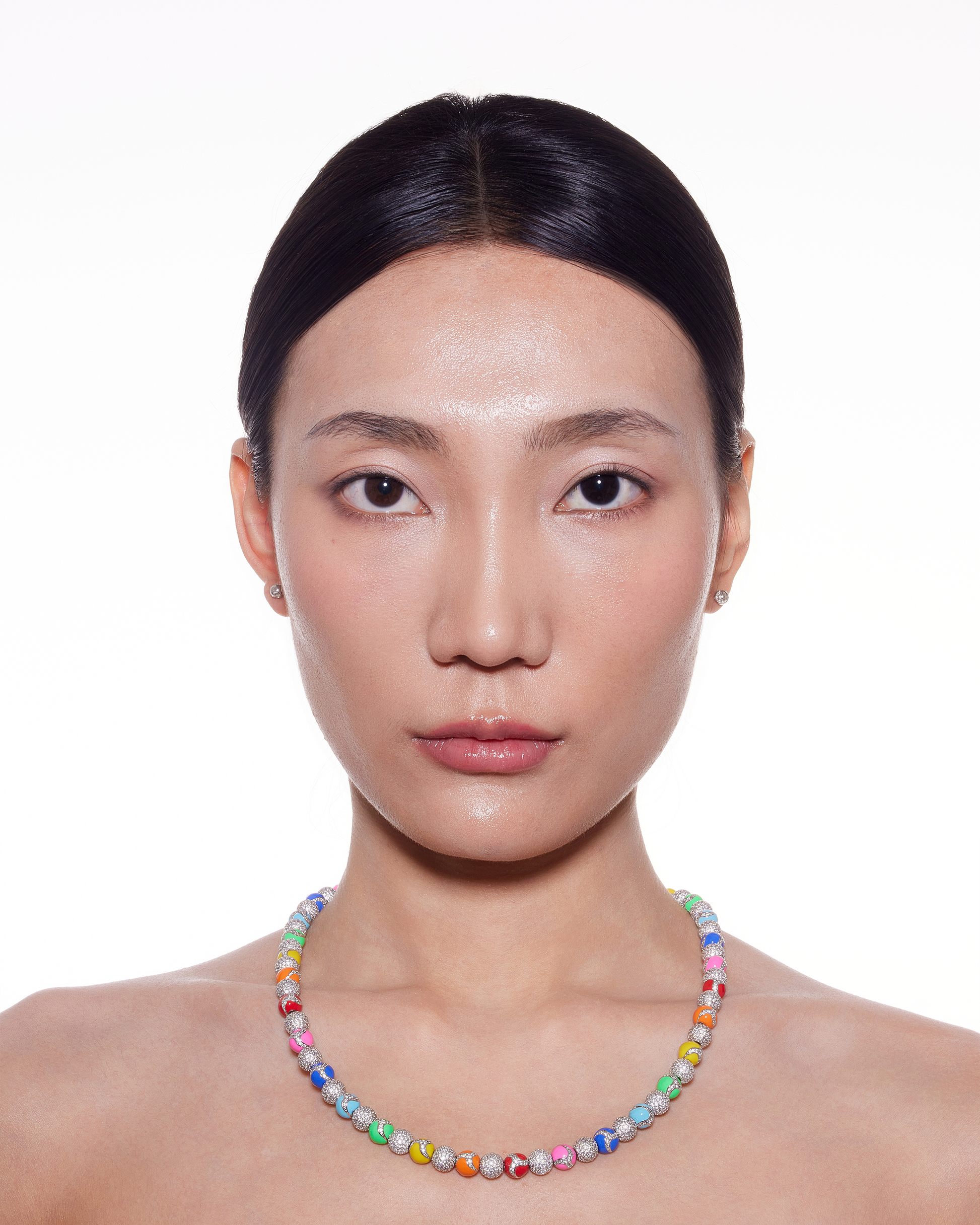 The Rainbow Drip Dragon Necklace is crafted from sterling silver plated with 18K white gold and copper plated with 18K white gold, featuring rainbow-colored enamel. The necklace is fully pavé-set with natural clear quartz and cubic zirconia.