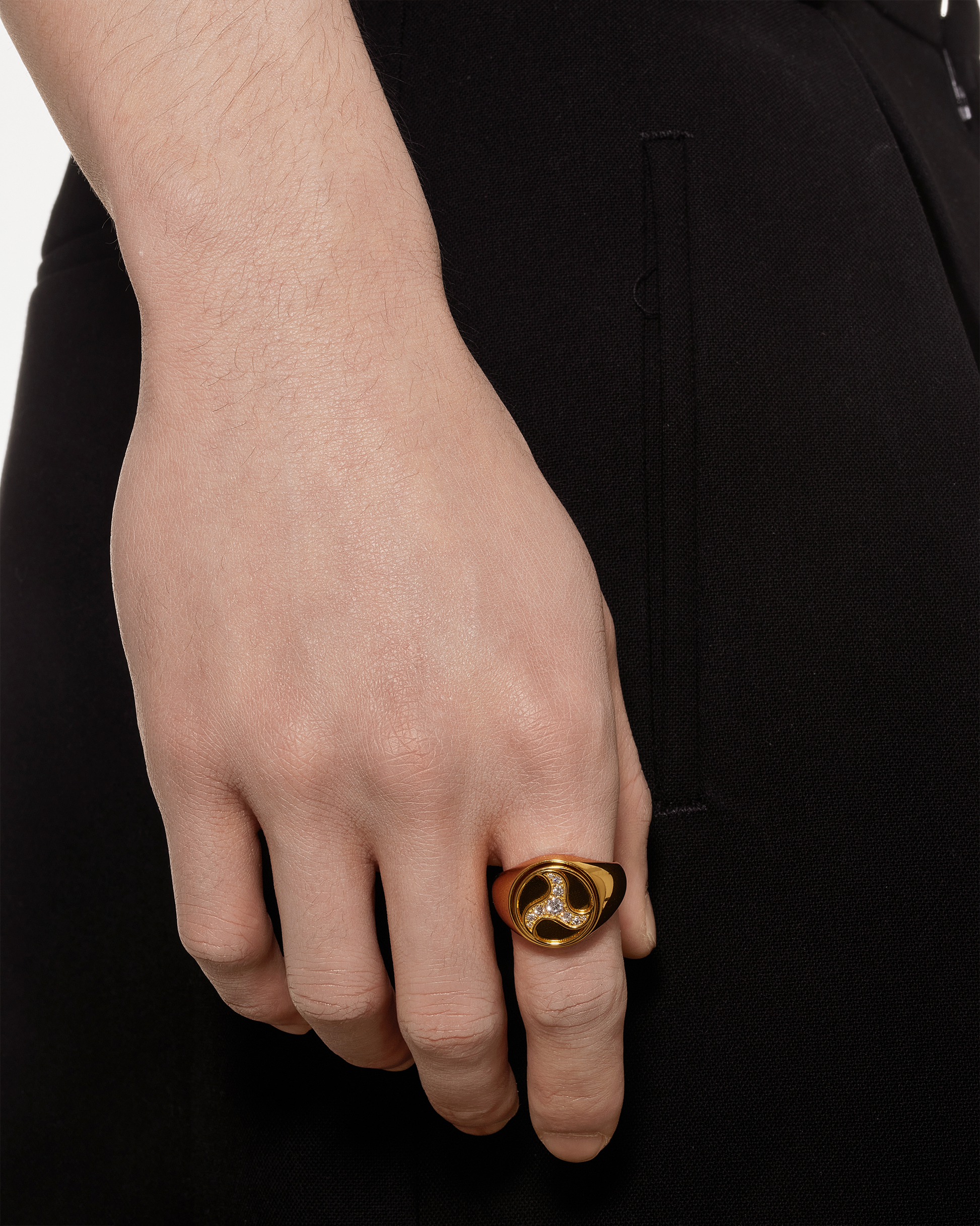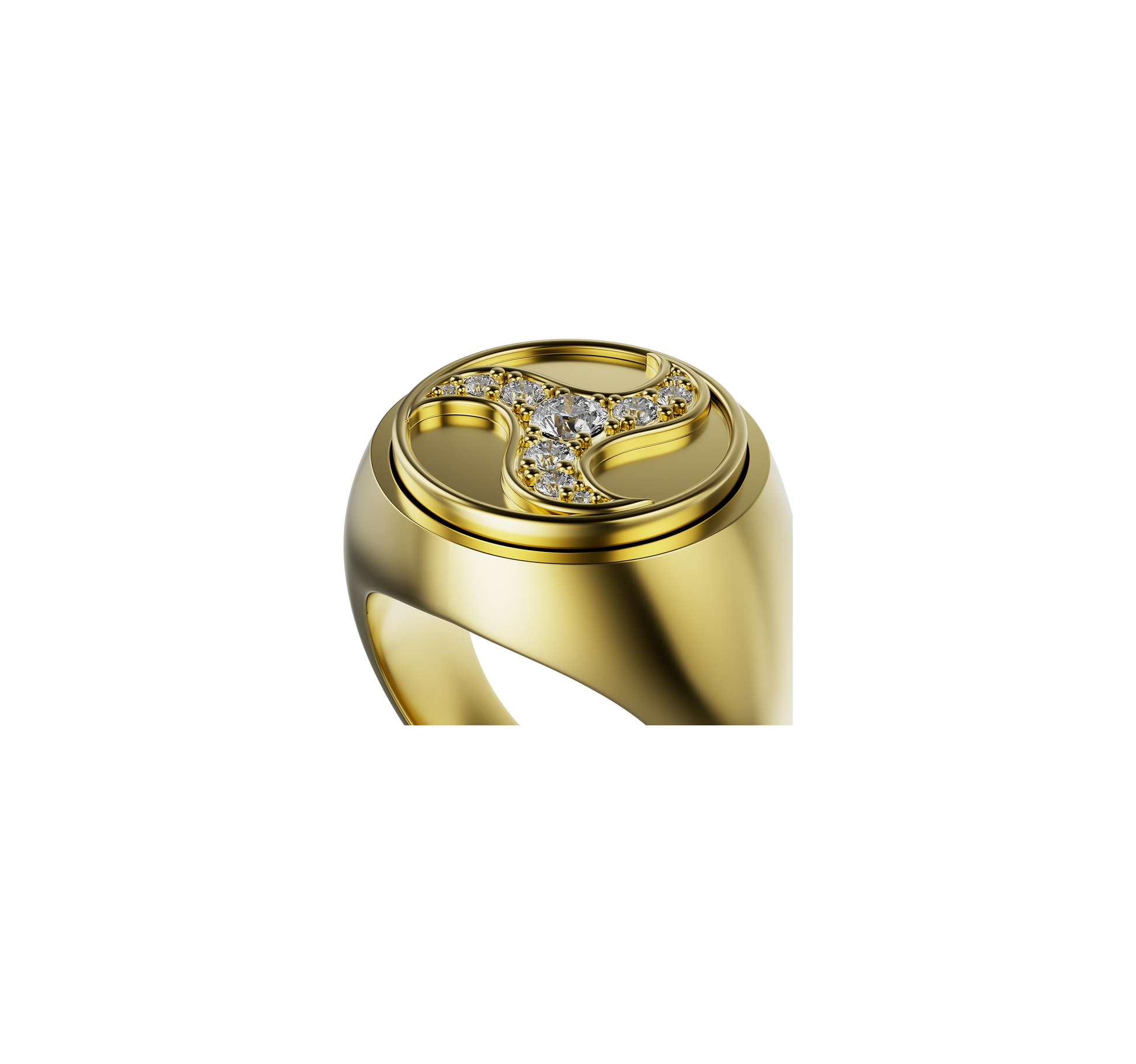 The Wheel Of Joy Spinning Ring is crafted from sterling silver plated with 18k gold and pavé-set with lab-grown diamonds.